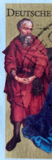 Martin Schongauer, ważny artysta swoich czasów (1450-1491), namalował scenę Narodzenia przedstawioną na znaczku pocztowym (Poczta Niemiecka). W tej scenie artysta umieścił tego spokojnego Józefa na peryferiach akcji. Wół i osioł są bliżej Jezusa niż Józef.